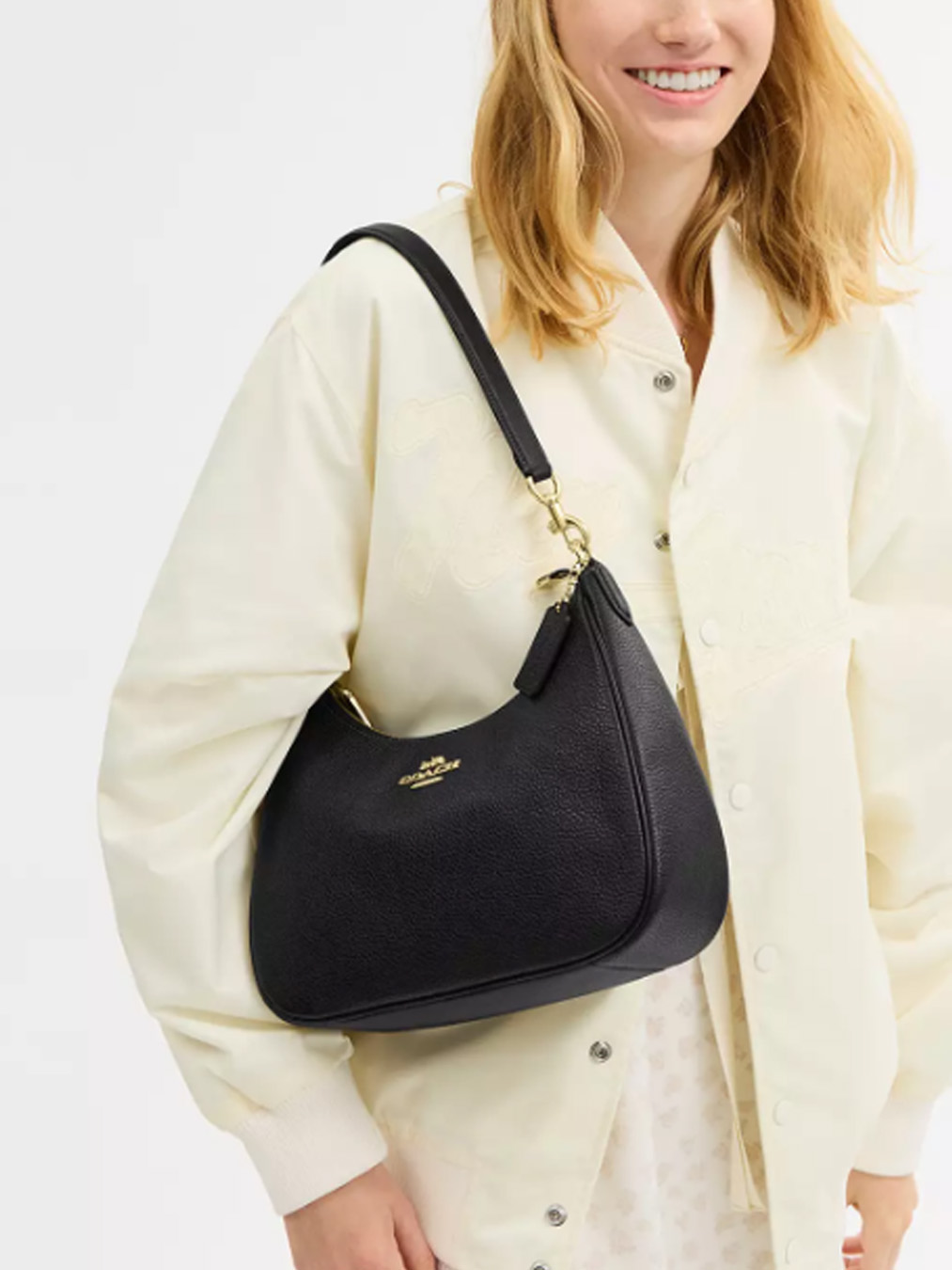Coach Teri Hobo Bag Pebbled Leather Gold Black