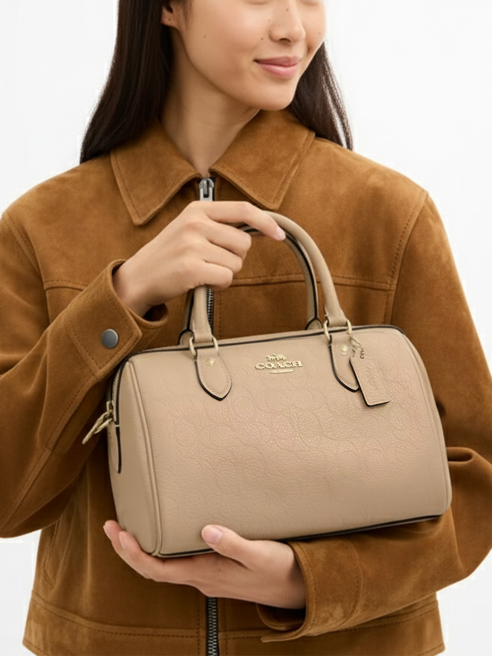 Coach Rowan Satchel Bag In Signature Leather Oat