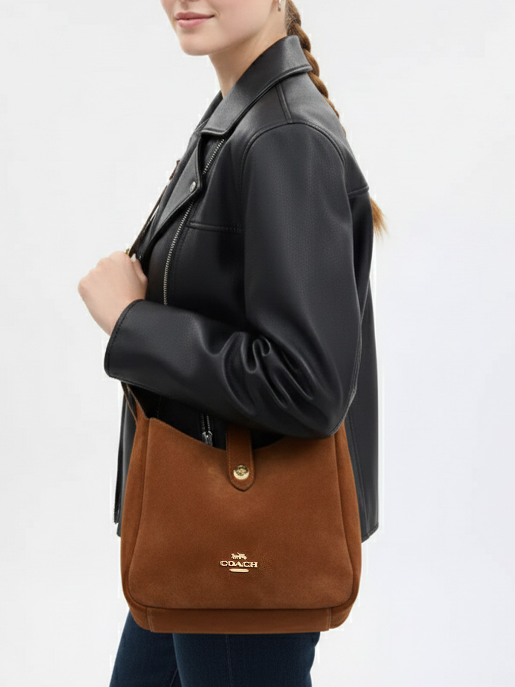 Coach Hadley Convertible Crossbody Bag Suede Gold Sienna