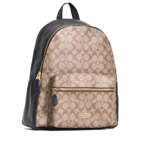 Coach Charlie Backpack Signature Khaki Black
