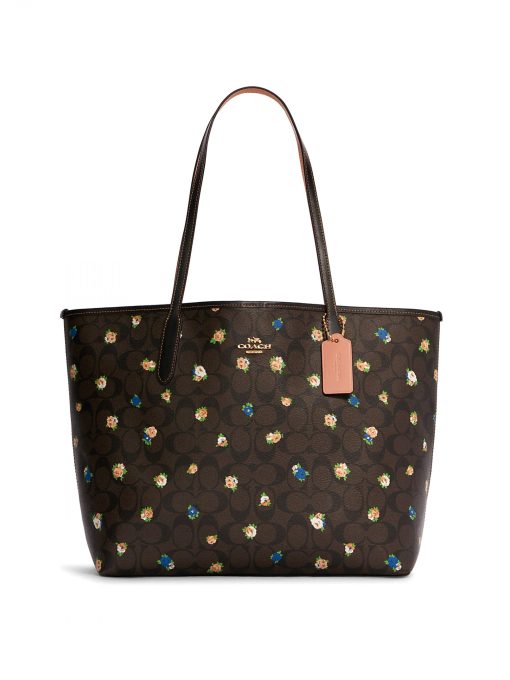 Coach City Tote Vintage Mini Rose Print Signature Brown Black Multi