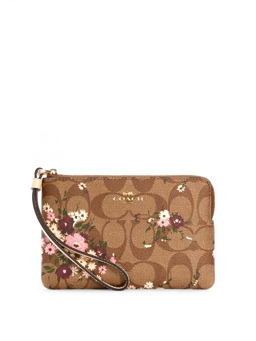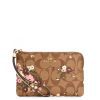 Coach Corner Zip Wristlet Evergreen Floral Print Signature Khaki Multi