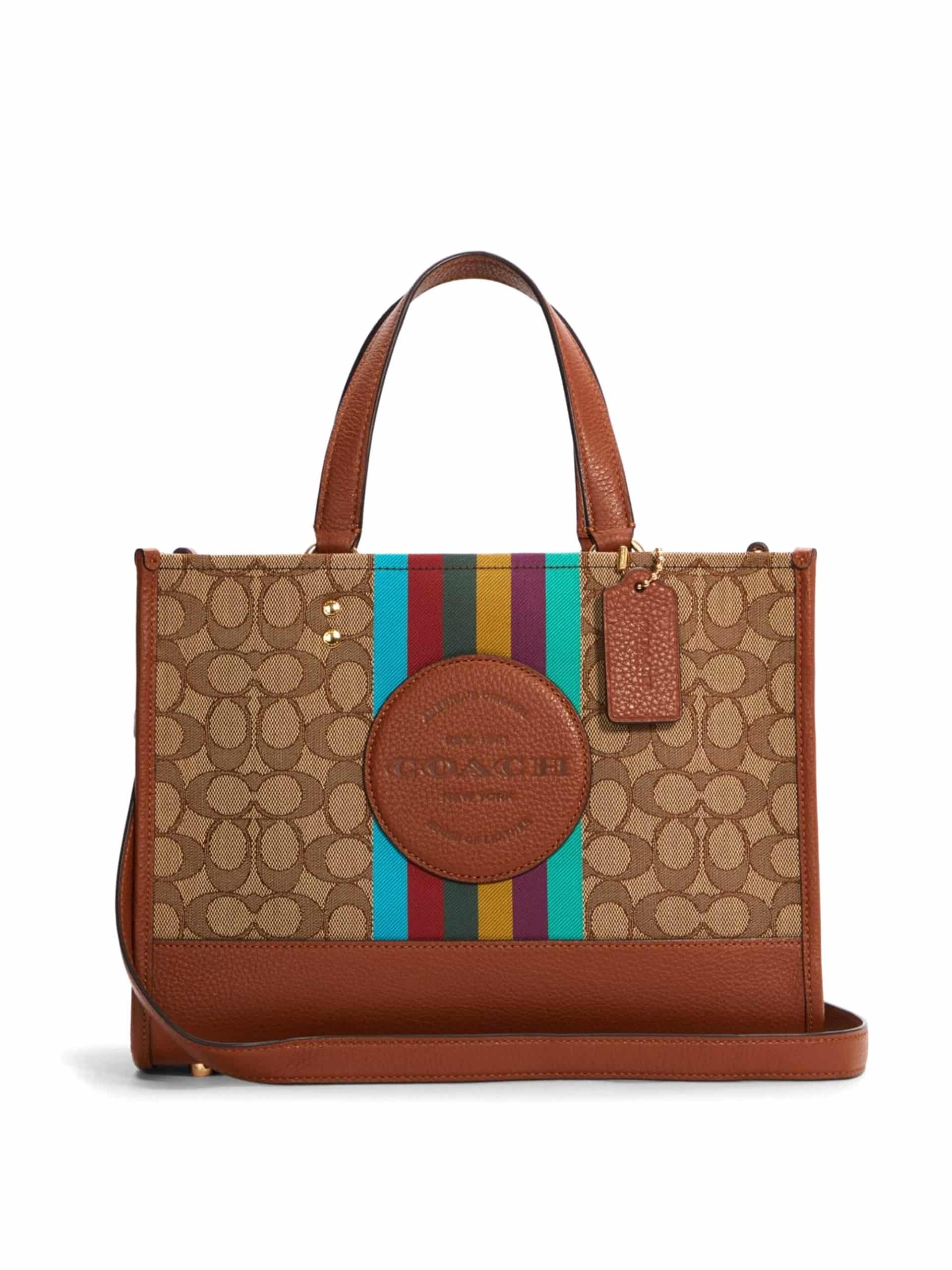 Coach Dempsey Carryall Stripe Coach Patch Signature Khaki Redwood Multi