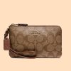 Coach Double Corner Zip Wristlet Signature Khaki Saddle 2