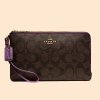 Coach Double Zip Wallet Signature Brown Metallic Berry ETA 20th Dec