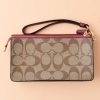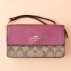 Coach Foldover Wristlet Signature Khaki Metallic Wine