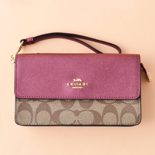Be the first to review “Coach Foldover Wristlet Signature Khaki Metallic Wine”