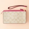 Coach Foldover Wristlet Signature Light Khaki Rouge