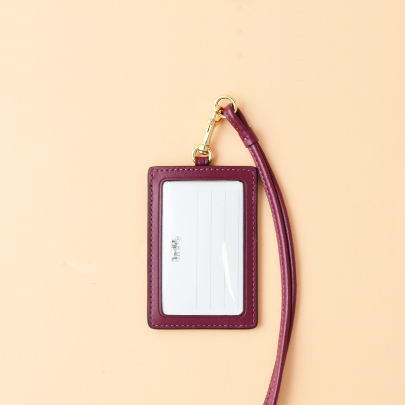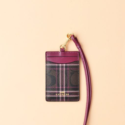 Coach ID Lanyard Shirting Plaid Print Signature Brown Fuschia Multi