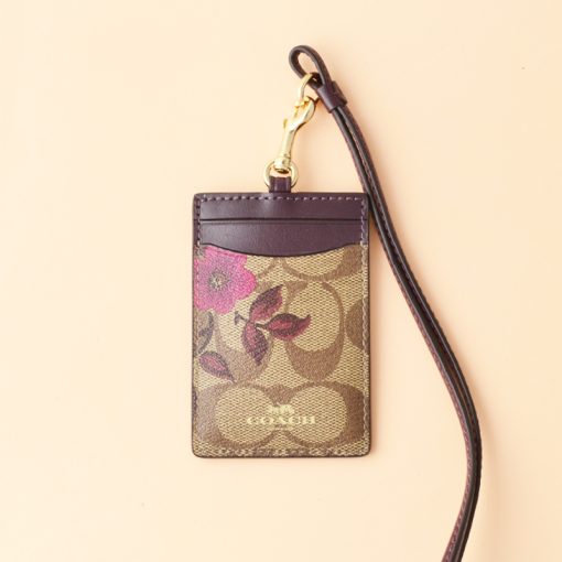 Coach ID Lanyard Victorian Floral Print Signature Khaki Berry Multi