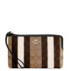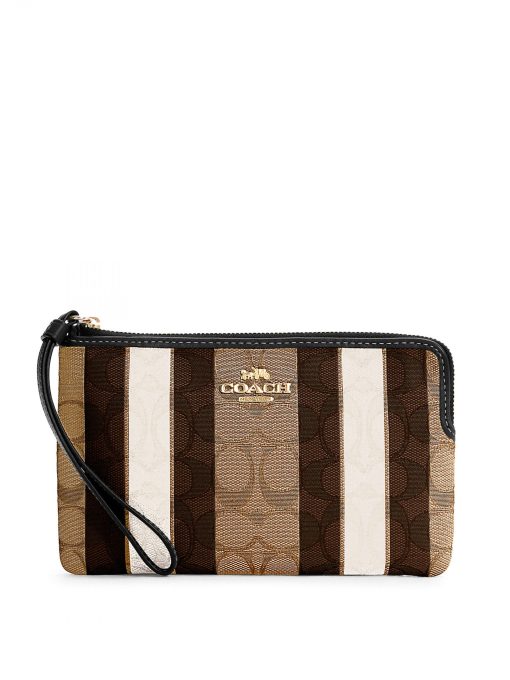 Coach Large Corner Zip Wristlet Jacquard Stripes Signature Khaki Black Multi