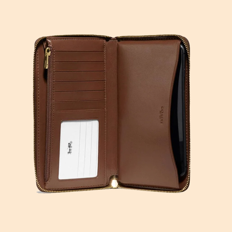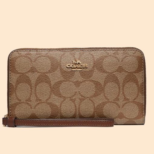 Coach Large Phone Wallet Signature Khaki Saddle 2