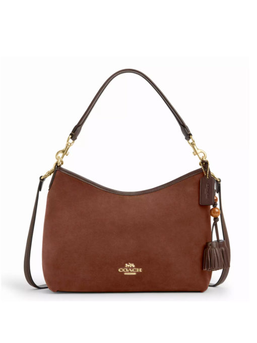 Coach Laurel Shoulder Bag With Tassels Suede Brown Maple