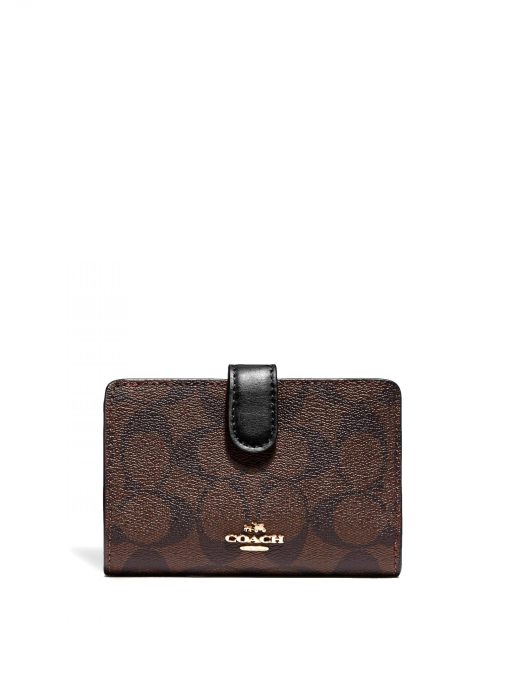Coach Medium Corner Zip Wallet Signature Brown Black ETA 15th Mar