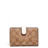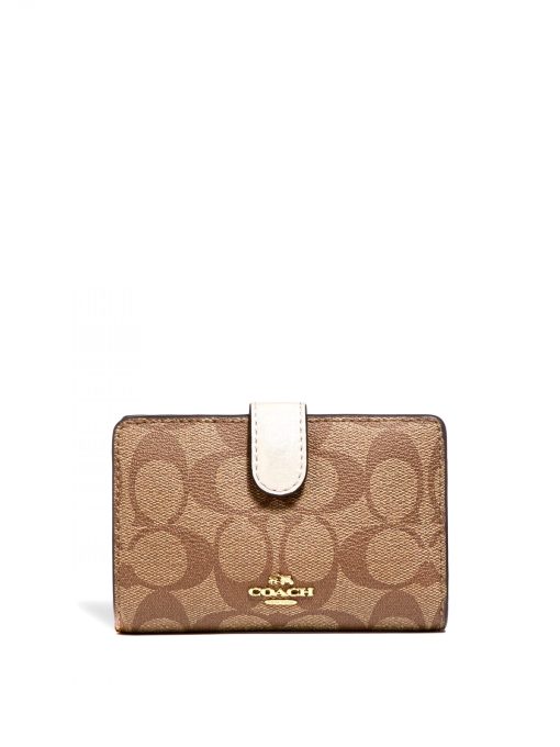 Coach Medium Corner Zip Wallet Signature Khaki Chalk