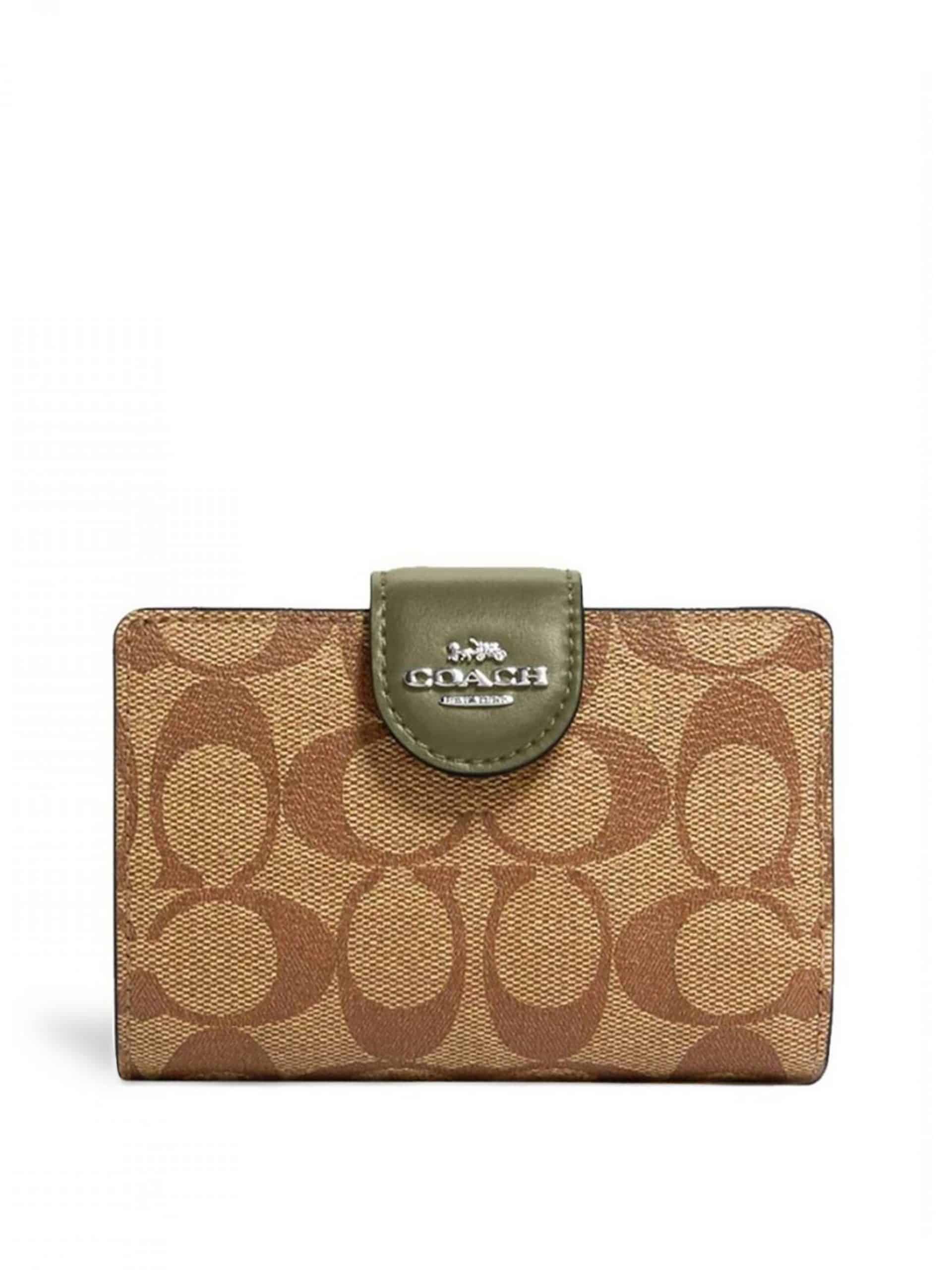 Coach Medium Corner Zip Wallet Signature Khaki Surplus