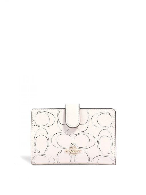 Coach Medium Corner Zip Wallet Signature Leather Chalk
