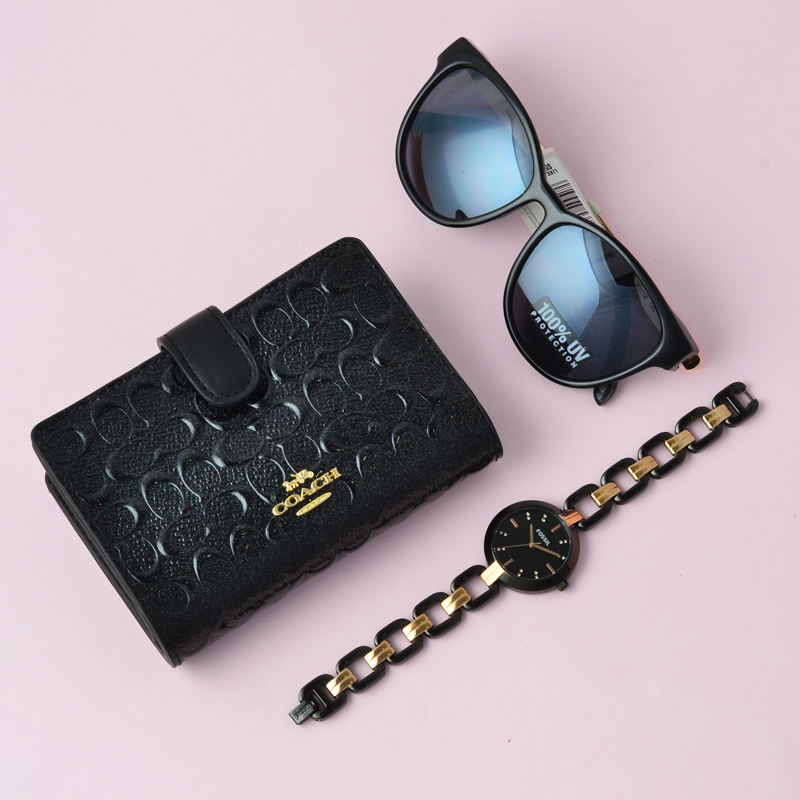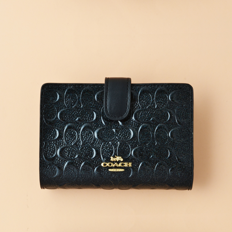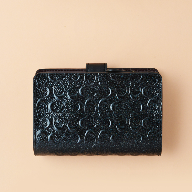 Coach Medium Corner Zip Wallet Signature Patent Leather Black