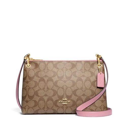 Coach Mia Crossbody Blocked Signature Khaki Pink Petal