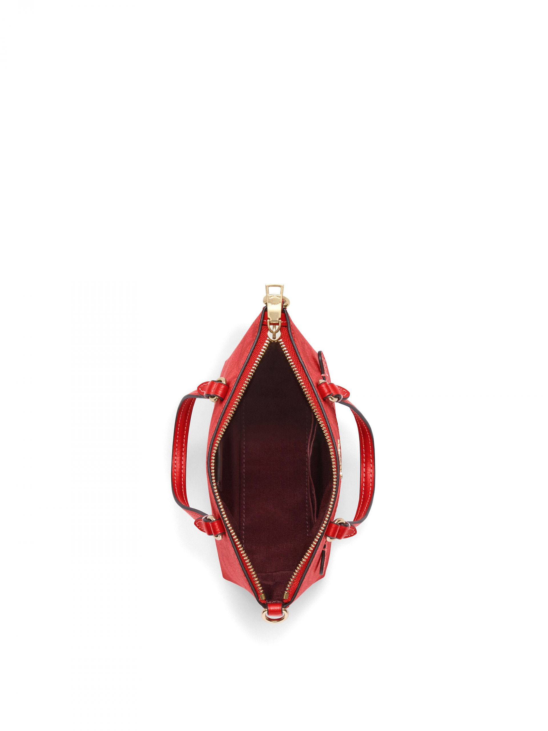 - Detachable strap with 23 1/2″ drop for shoulder or crossbody wear