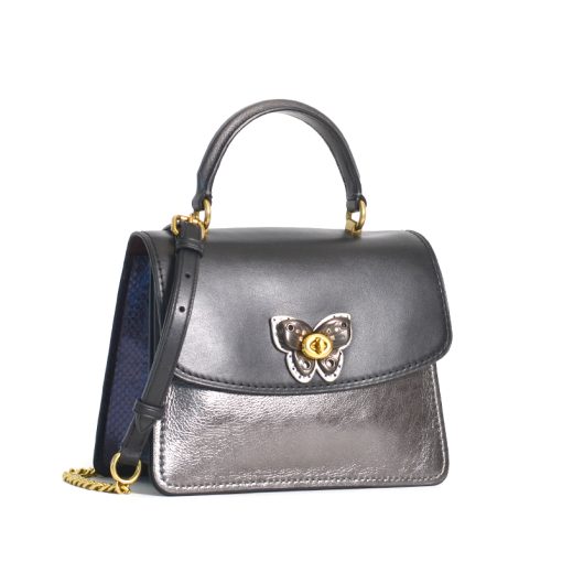 Coach Parker Top Handle Butterfly Turnlock Snakeskin Black