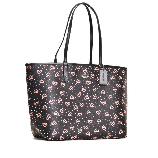 Coach Reversible City Tote Crayon Heart Print Black Pink Multi