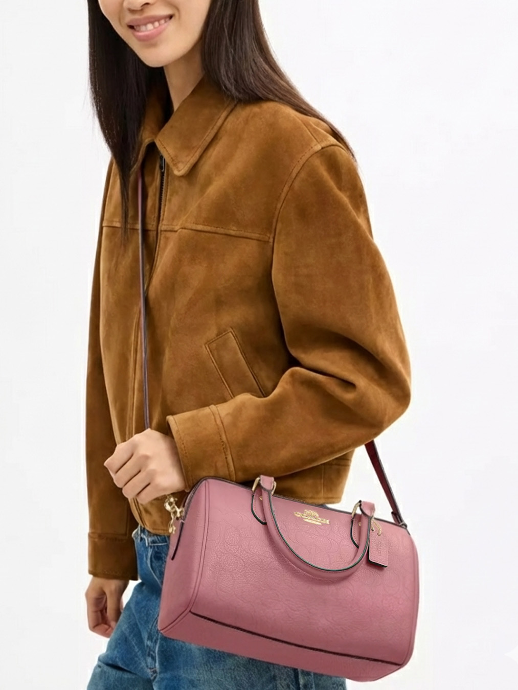 Coach Rowan Satchel Bag In Signature Leather Rose