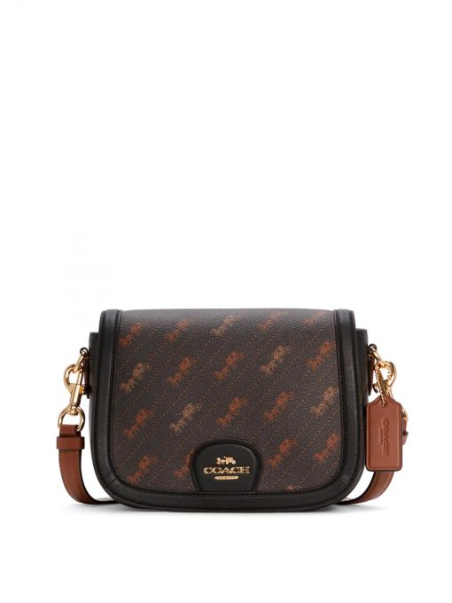 Coach Saddle Bag Horse And Carriage Dot Print Black