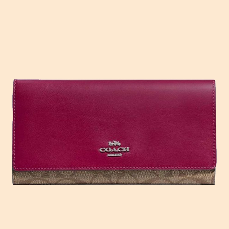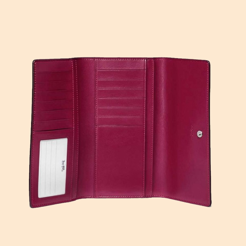 Coach Trifold Wallet Signature Khaki Dark Fuchsia
