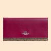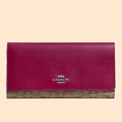 Coach Trifold Wallet Signature Khaki Dark Fuchsia