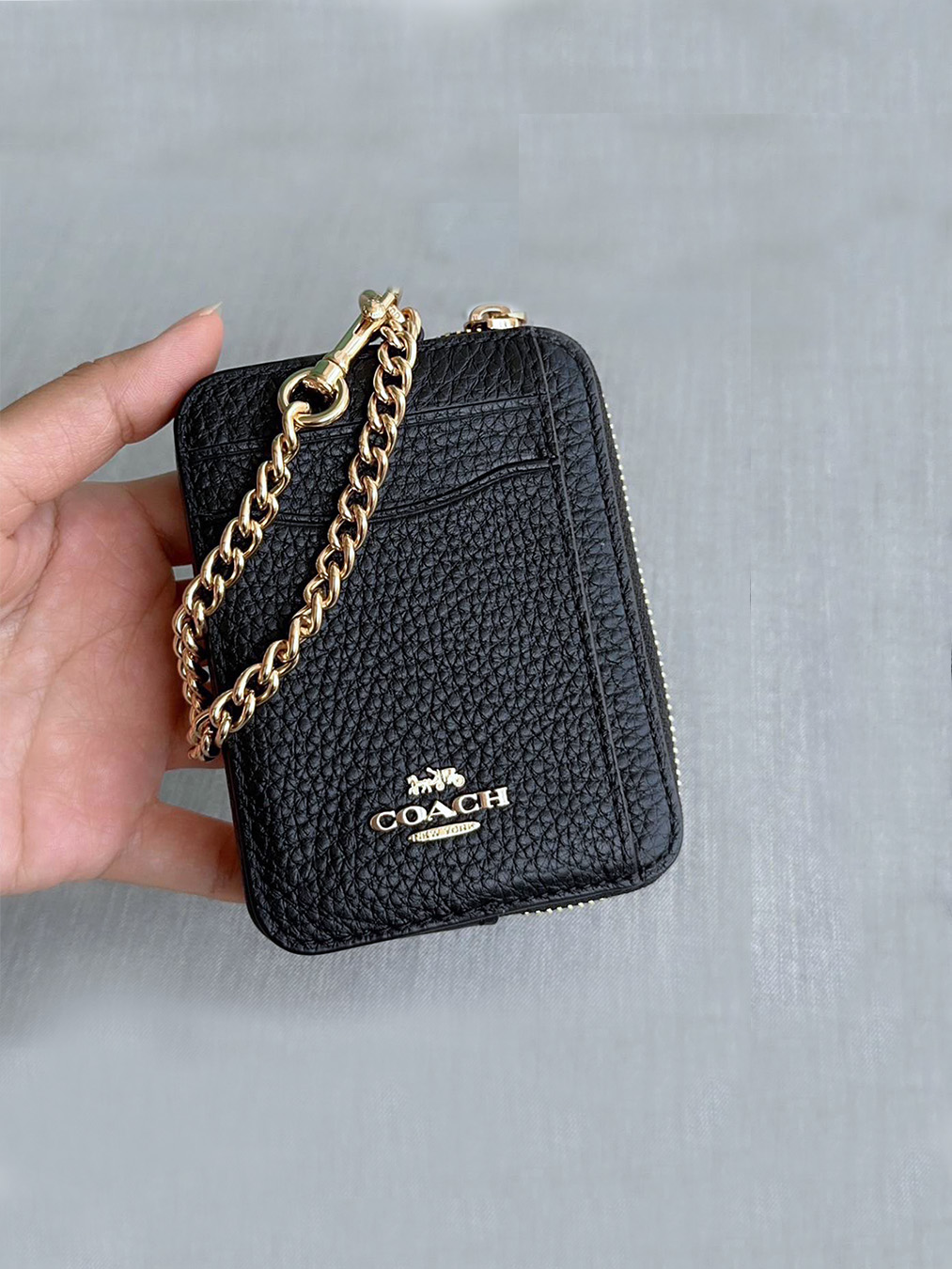 Be the first to review “Coach Zip Card Case Pebbled Leather Gold Black”