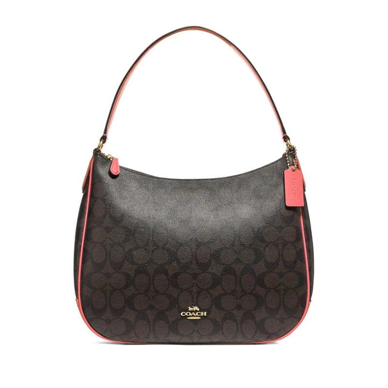 Coach Zip Shoulder Signature Brown Coral