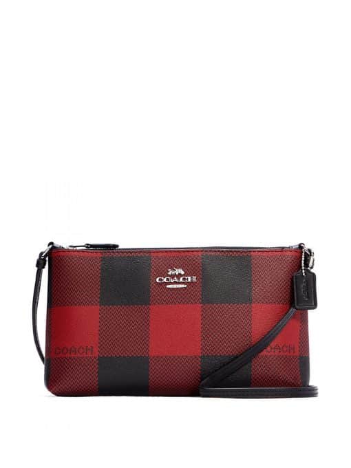 Coach Zip Top Crossbody Buffalo Plaid Print Black Red Multi