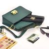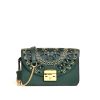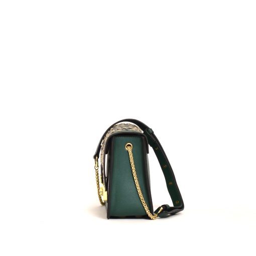 • Fold-over flap with pushlock gold hardware closure.