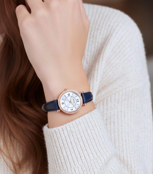 Fossil Carlie Three-Hand Navy LiteHide™ Leather Watch