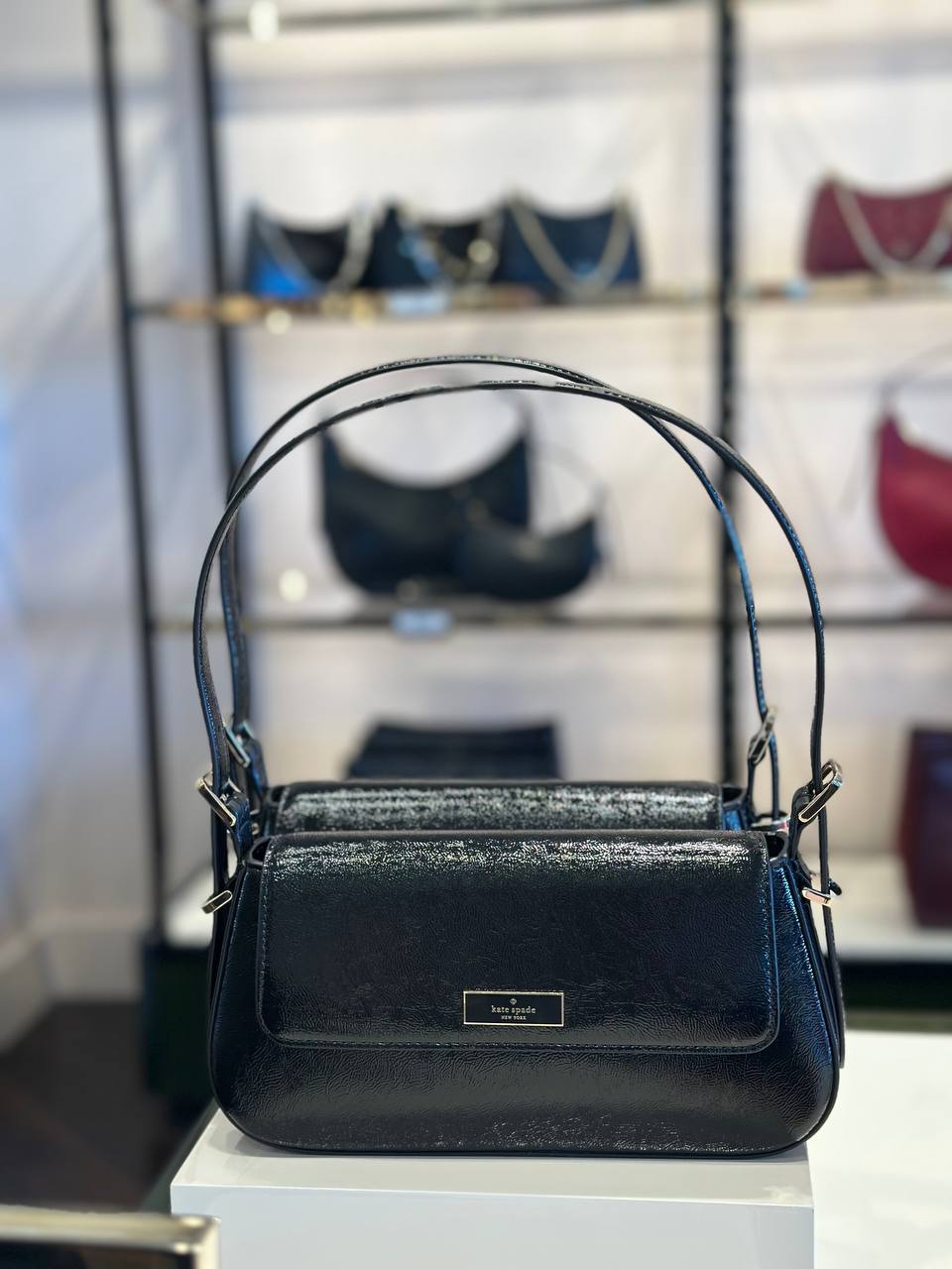 Kate Spade Bridget Crinkle Patent Small Flap Shoulder Black