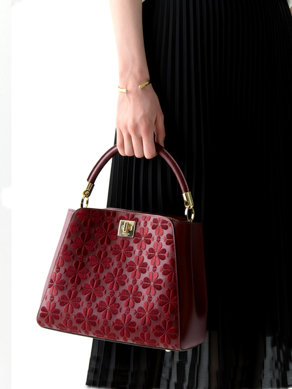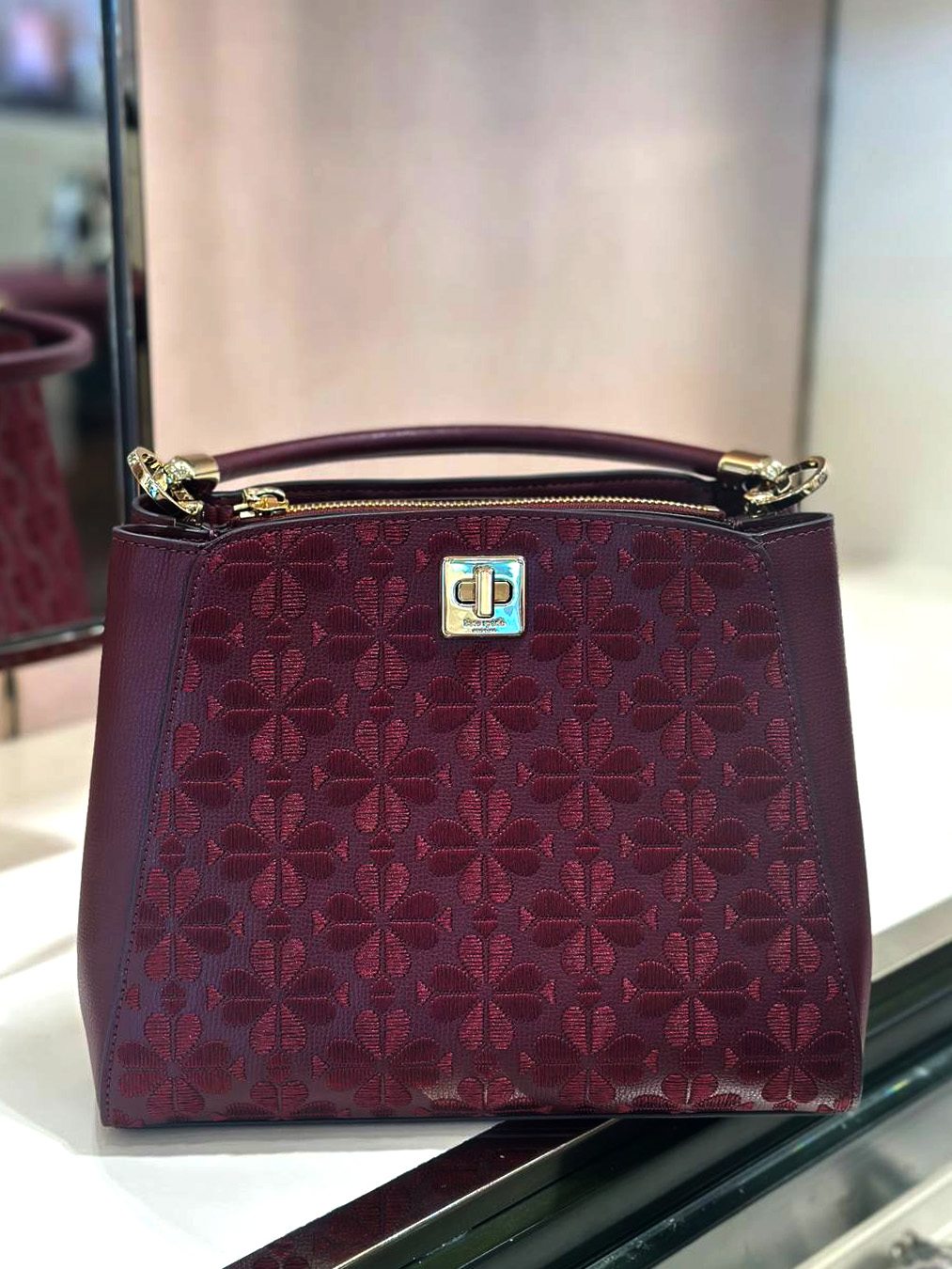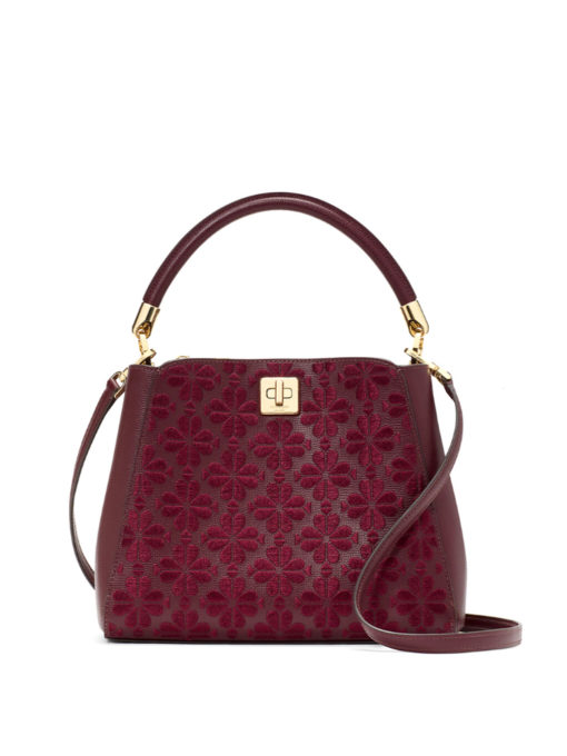 Kate Spade Flower Embroidered Top Handle Medium Satchel Merlot