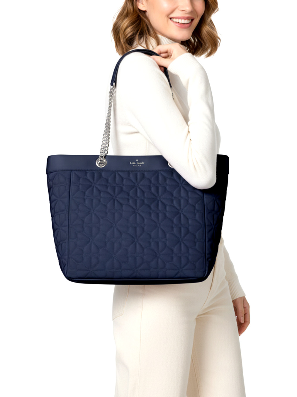 Kate Spade Flower Quilted Fabric XL Tote Navy
