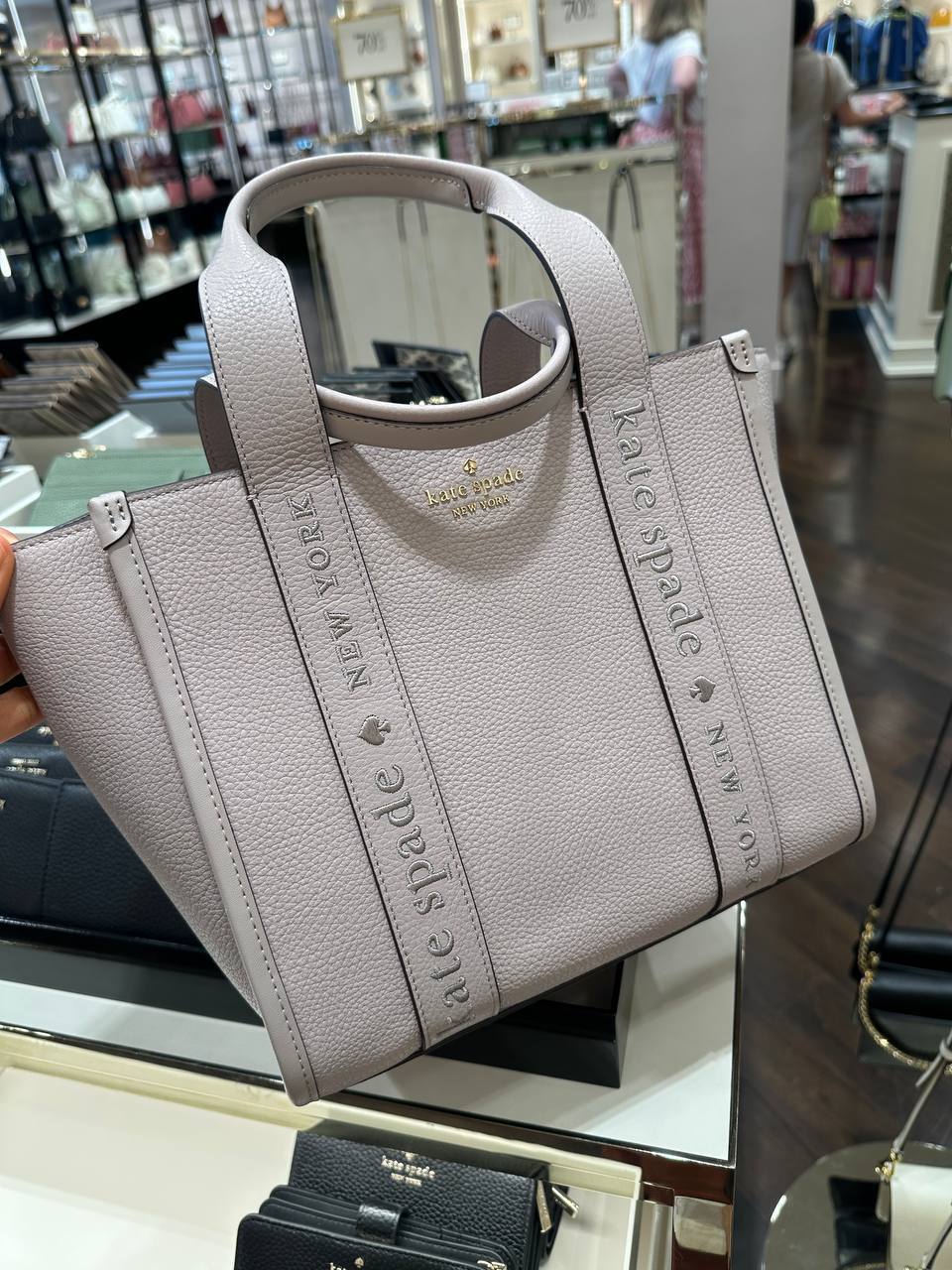 Be the first to review “Kate Spade Kip Leather Small Tote Cozy Grey”