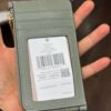 Material: Saffiano Interior: 2 credit card slots Closure: Zip closure Approximately: 5.3″ h x 2.8″ w