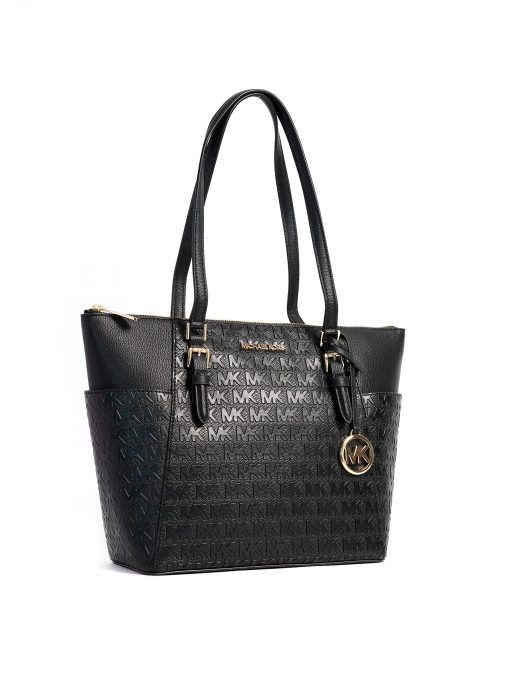Be the first to review “Michael Kors Charlotte Large Top Zip Tote Embossed Black”