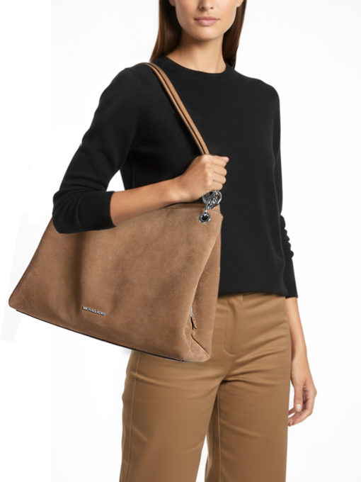 Michael Kors Christina Large Suede Shoulder Bag Driftwood