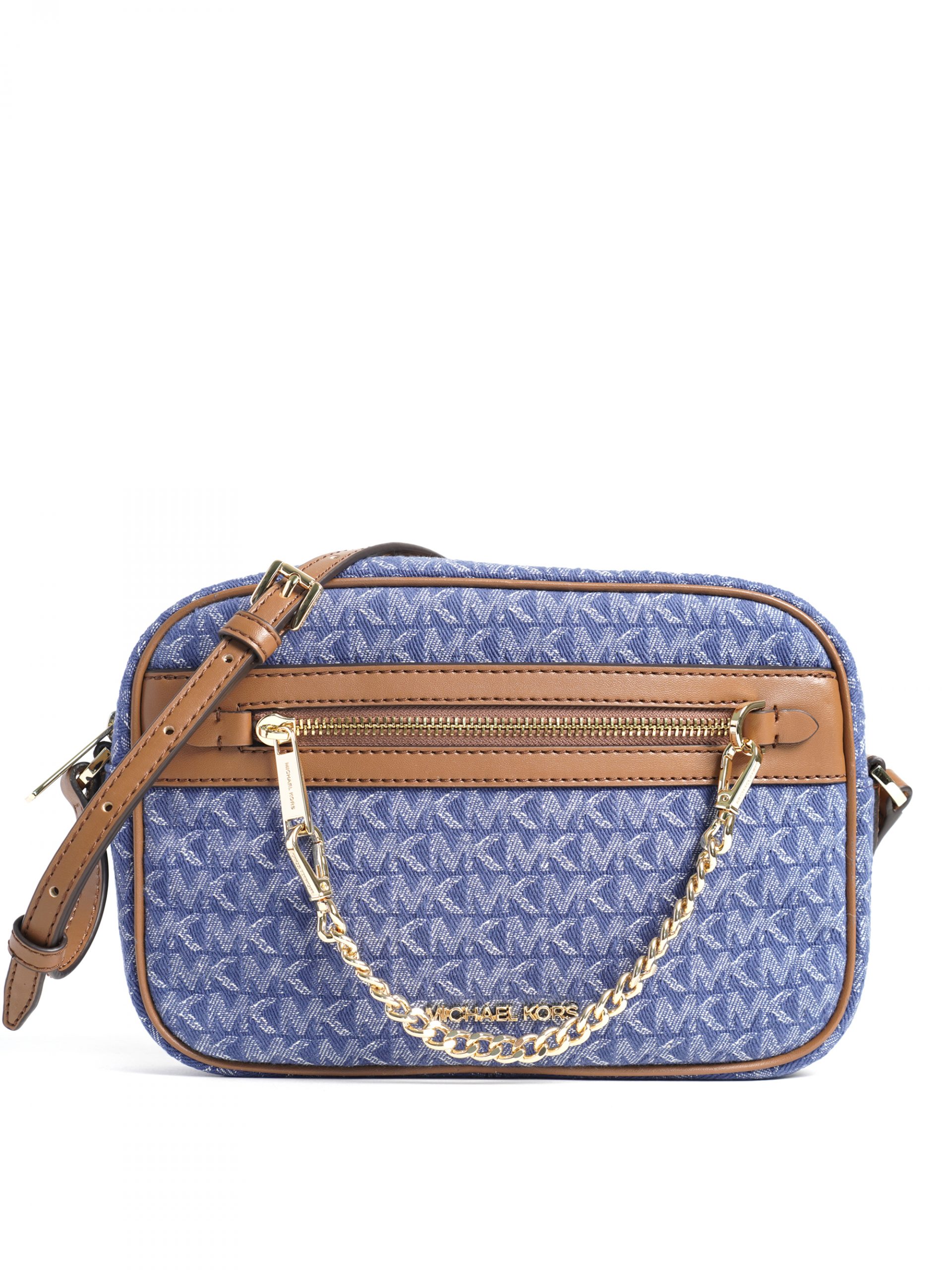 Michael Kors Jet Set Item Large East West Zip Chain Crossbody Logo Denim Multi