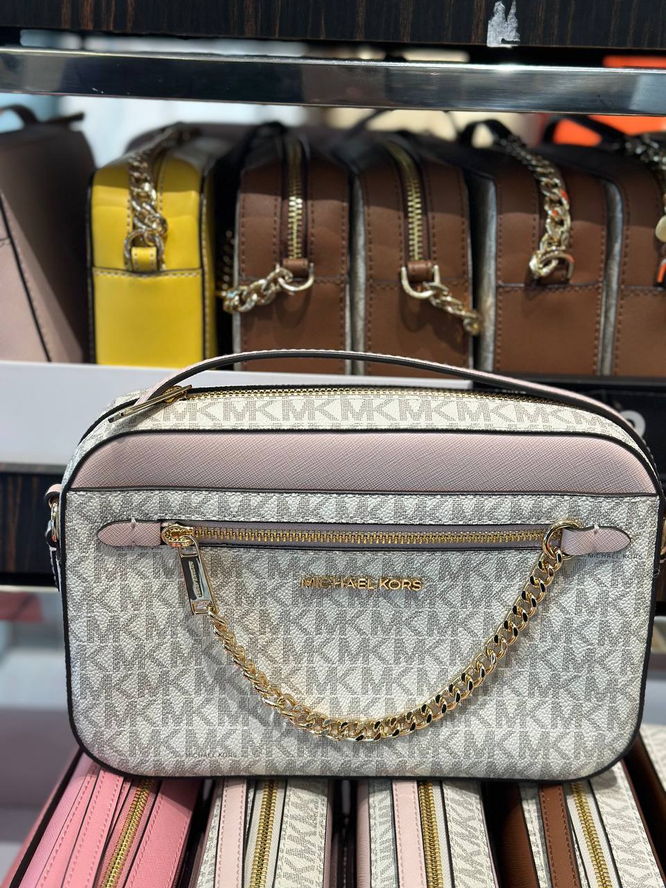 Michael Kors Jet Set Item Large East West Zip Chain Crossbody Signature Powder Blush Multi