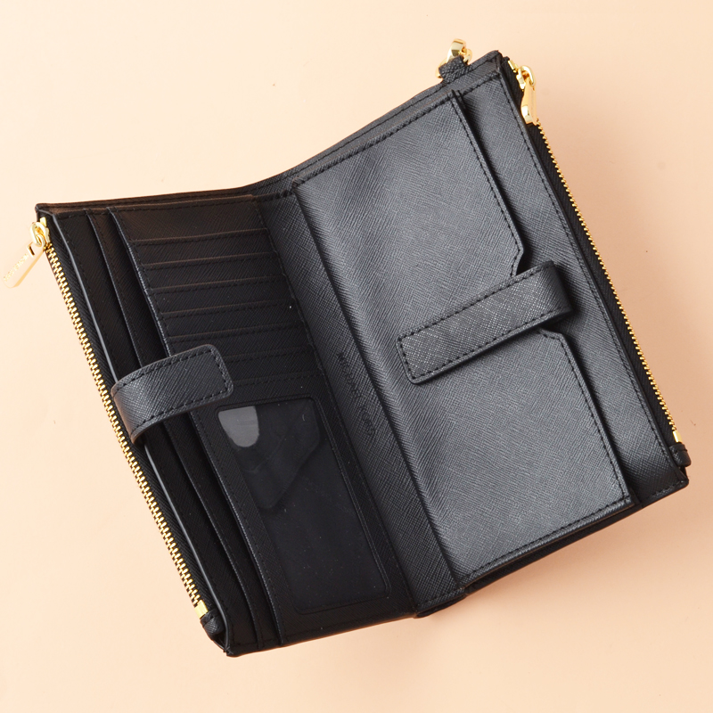 Interior features zip pocket, three inner pockets, and 6 card holders