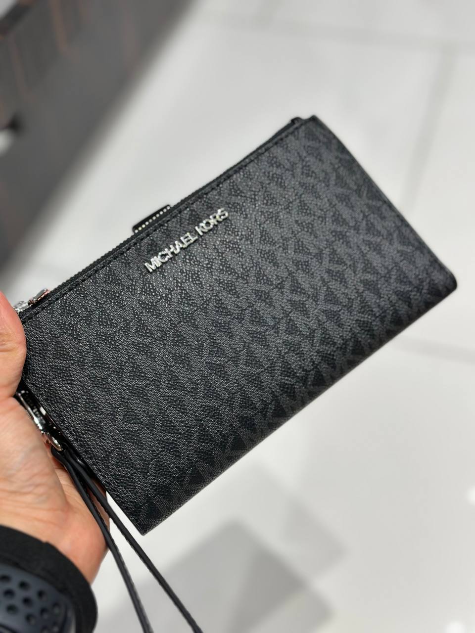Michael Kors Jet Set Travel Large Double Zip Wristlet Signature Black