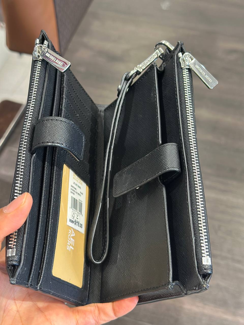 Interior: Zip pocket, three inner pockets, and 6 card holders