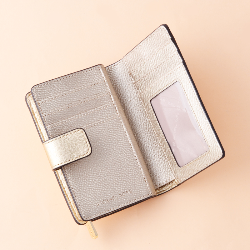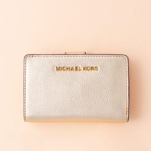 Michael Kors Jet Set Travel Medium Bifold Zip Coin Wallet Pale Gold