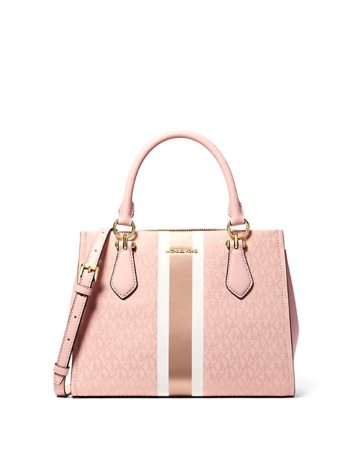 Michael Kors Marilyn Medium Signature Stripe Satchel Powder Blush