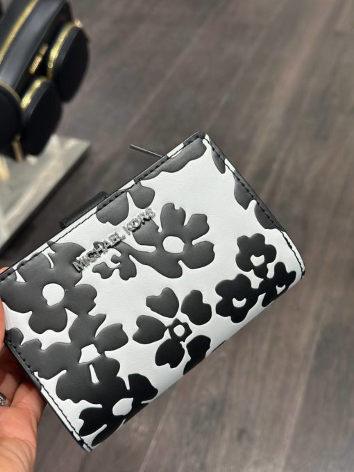 Michael Kors Medium Floral Print Bi-Fold Wallet Black